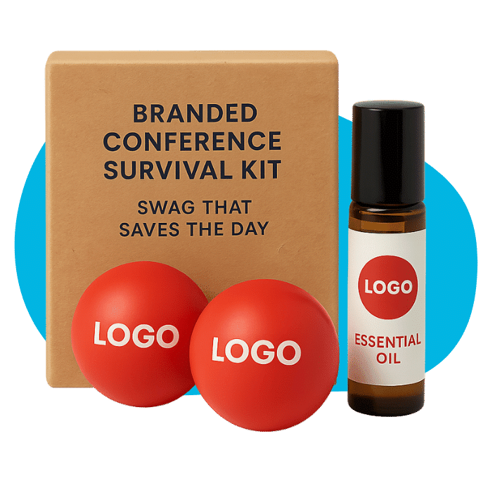 Conference burnout is real. Ease the load with stress-relief tools like branded fidget items or relaxing essential oil rollers.
