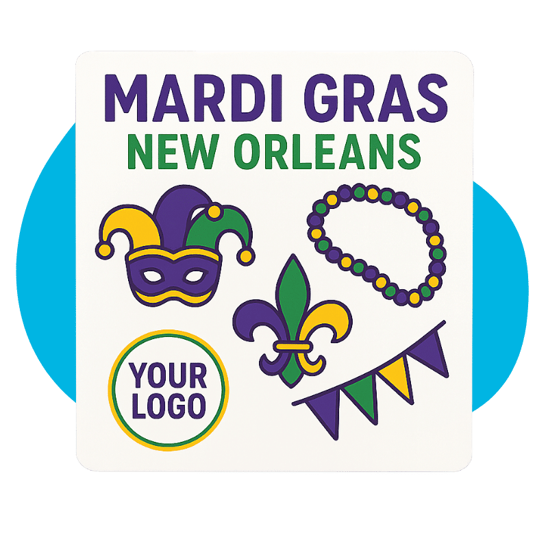 Let your brand shine this Mardi Gras with personalized merchandise that captures the spirit of New Orleans. Whether you’re part of a krewe, hosting an event, or running a business near the parade route, custom beads, stylish apparel, and themed party favors will make your brand unforgettable on Bourbon Street and beyond.