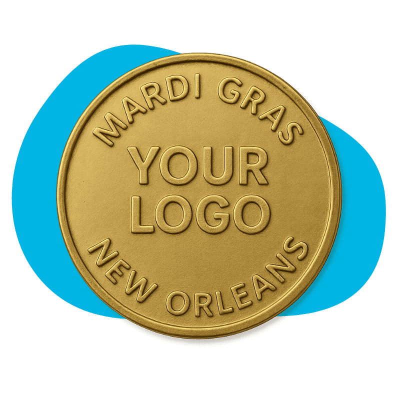 Traditional Mardi Gras coins customized with your logo or message make a collectible and culturally authentic giveaway.