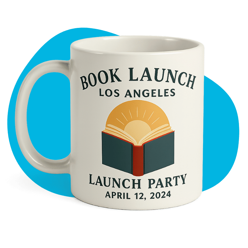 Celebrate with branded mugs featuring the book release date and artwork-a perfect keepsake or door prize for attendees.