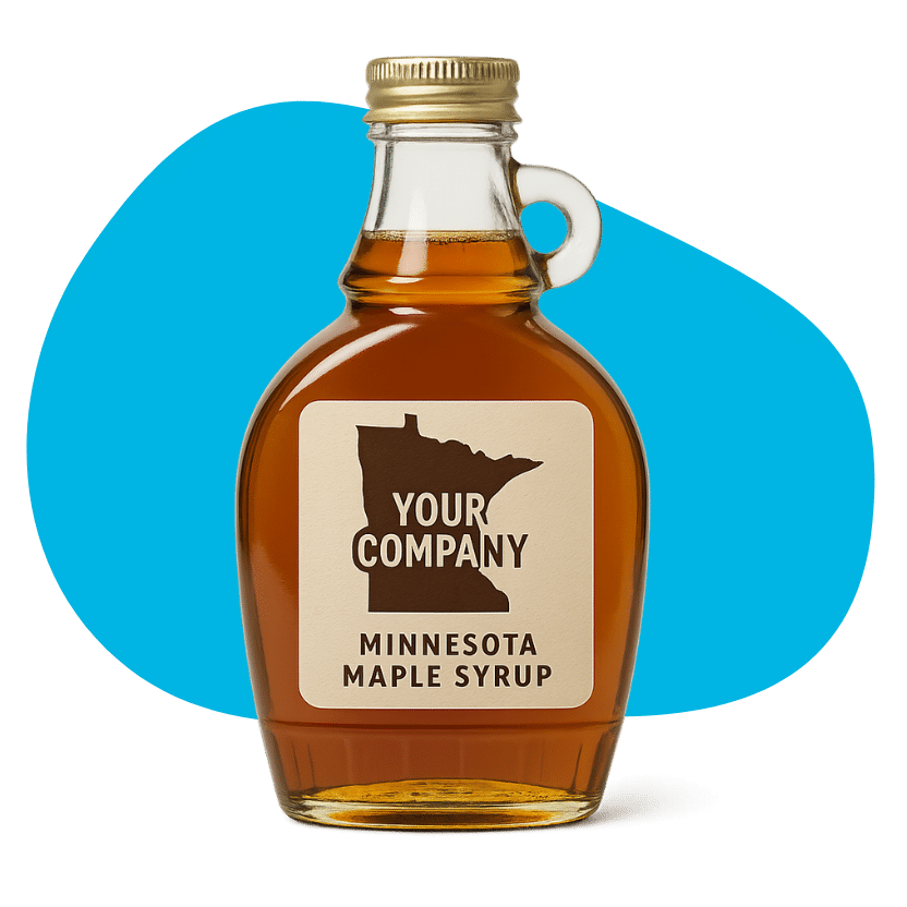 Minnesota-harvested syrup in custom-labeled glass bottles makes a sweet, premium-grade keepsake.