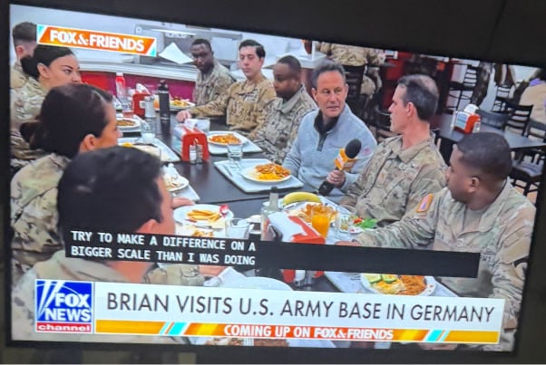 Produced custom embroidered Marine Layer quarter zip jackets for Fox News holiday gifts, personalized with individual names, Fox News Media branding, and an American flag patch. One of the pieces was worn on air during a Fox & Friends segment filmed at a U.S. Army base in Germany, showcasing the apparel in a national broadcast setting.
