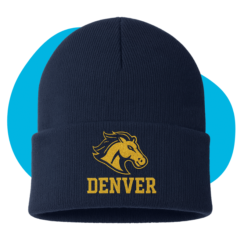 Keep warm during chilly Colorado games with knit beanies featuring your mascot and team initials.